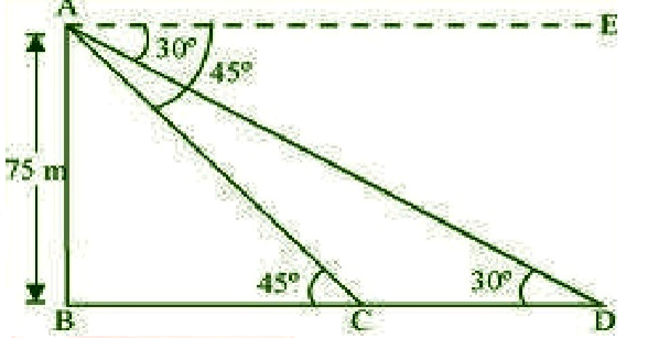 Therefore, the distance between the two ships is 75(√3 − 1) m.