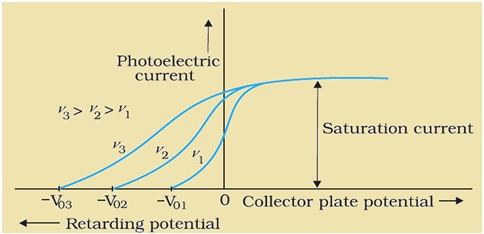 - As the retarding potential is further increased, even the electrons having maximum kinetic energy will be repelled by the repulsive force of the collector, and hence, the photoelectric current becomes zero